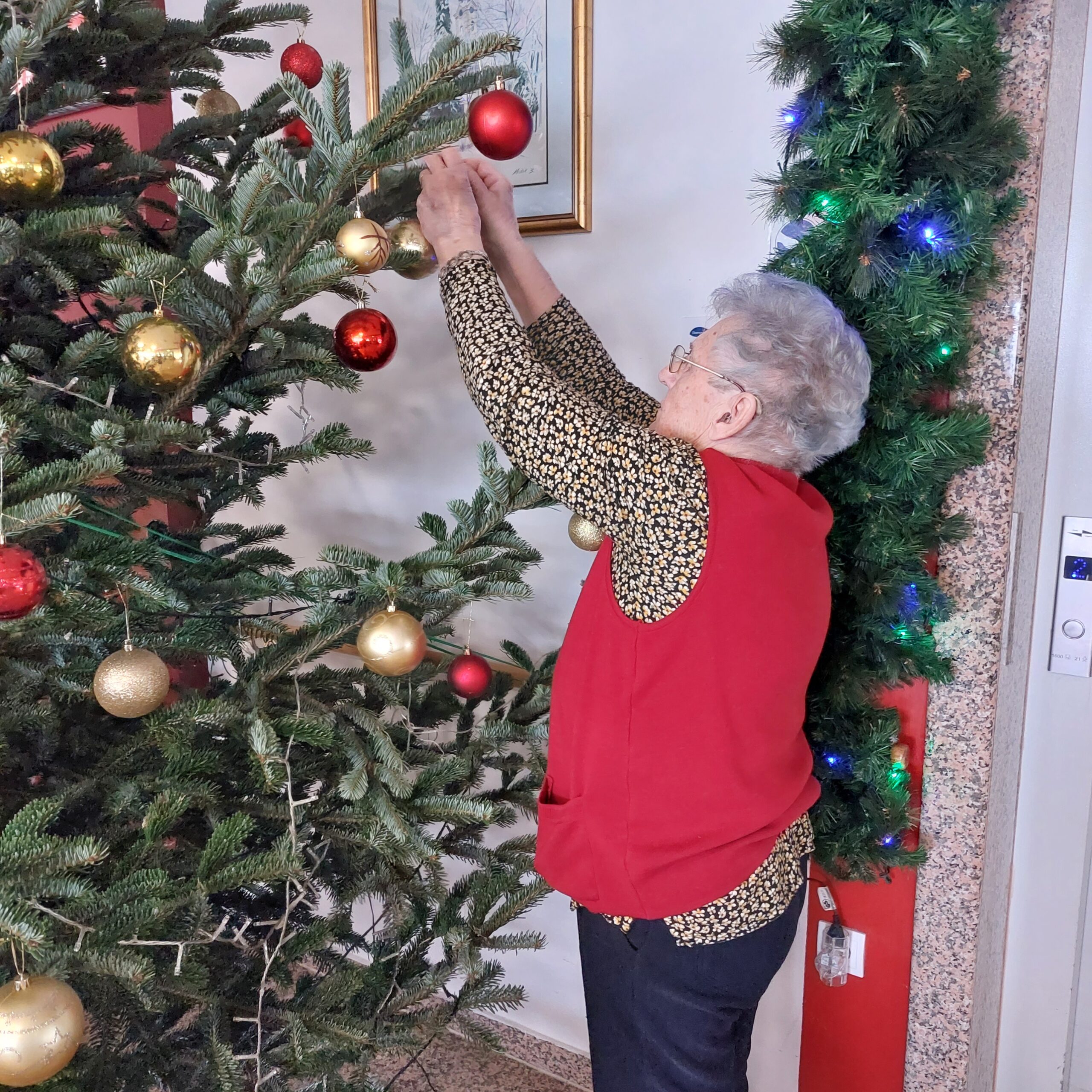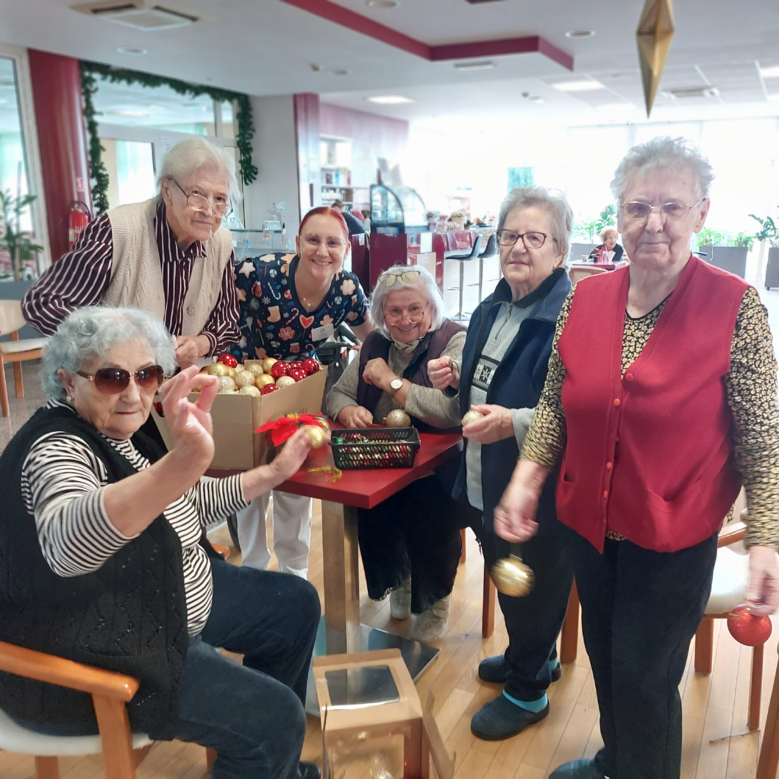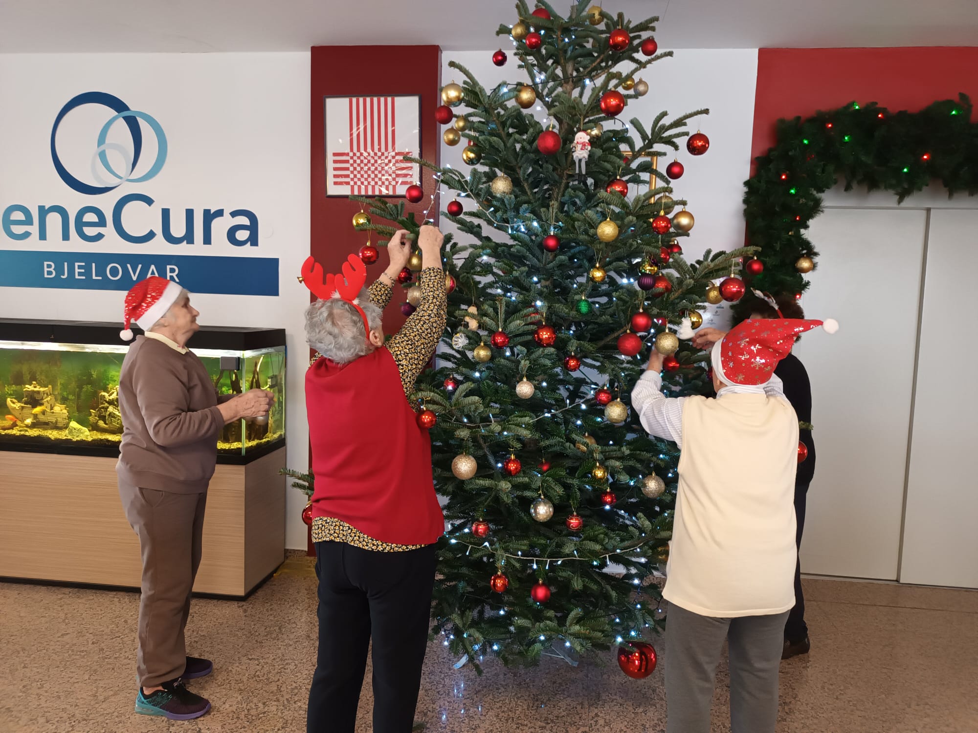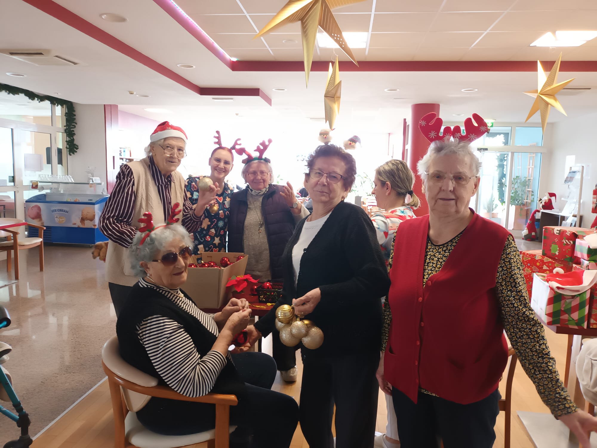 Jedan od posebnih trenutaka bio je zajedničko kićenje živog bora u prizemlju doma. Uz pjesmu i dobro raspoloženje, naše su korisnice sudjelovale u ukrašavanju božićnog drvca, čime je simbolično završeno blagdansko uređenje doma. Ovaj događaj unio je dodatnu toplinu u prostor, a zajednički rad potaknuo je razgovor, smijeh i osjećaj zajedništva.