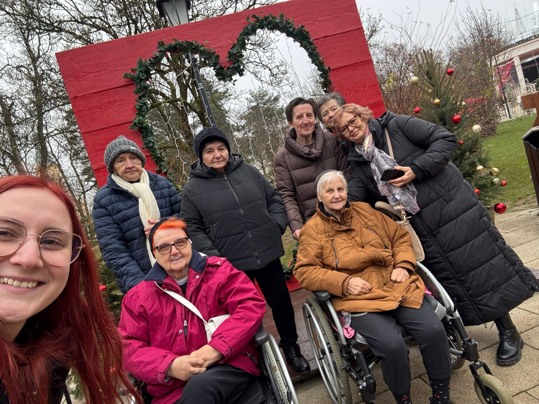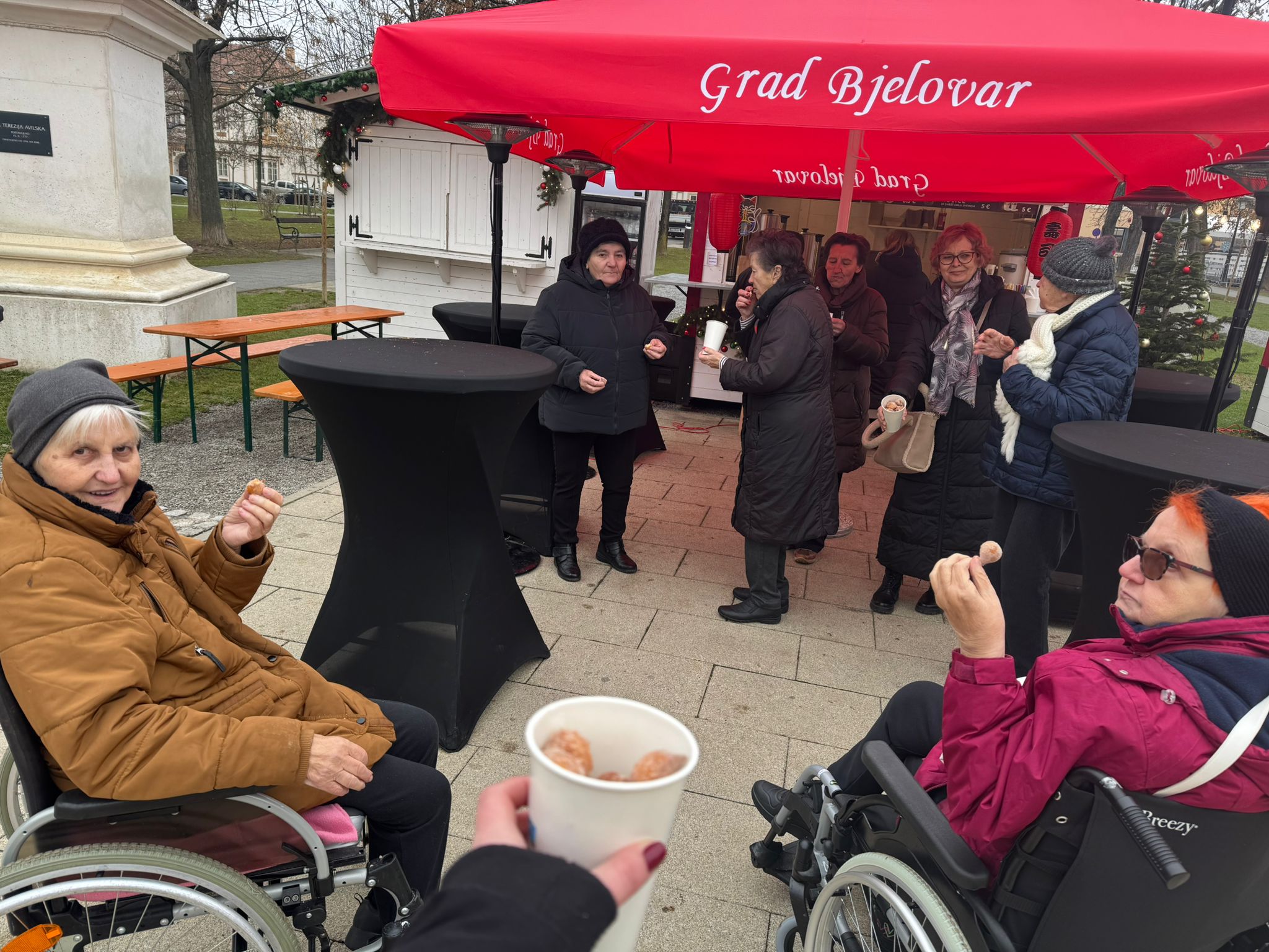 Blagdanski duh prenio se i izvan doma. Korisnice s odjela demencije posjetile su advent u Bjelovaru u pratnji fizioterapeutkinje Lee i animatorice Alene. Uživale su u šetnji gradom, blagdanskom ugođaju, fritulama i kavi. Ovakvi izlasci imaju poseban značaj jer pružaju promjenu okoline, potiču osjetila i donose osjećaj uključenosti u život zajednice.