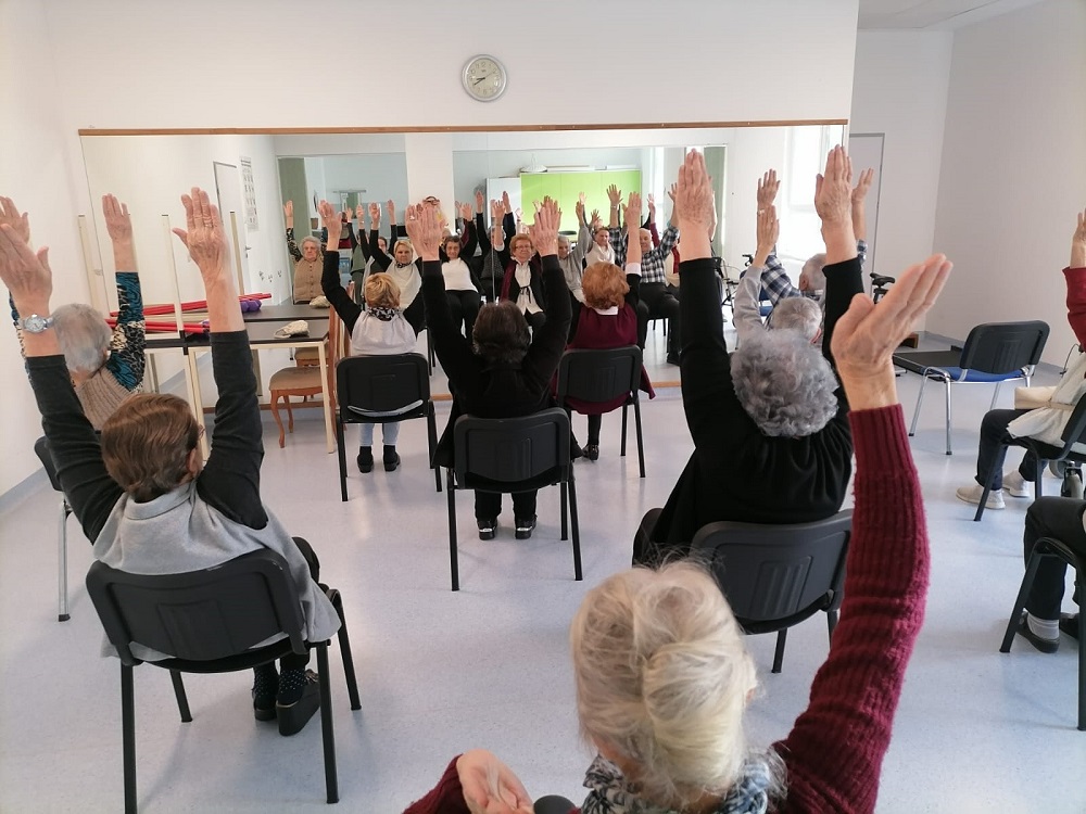 U SeneCura domu za starije Bjelovar redovito održavamo tjelovježbu za naše korisnike u sklopu grupnih vježbi koje održavamo u prizemlju i na odjelu polustaconara.
