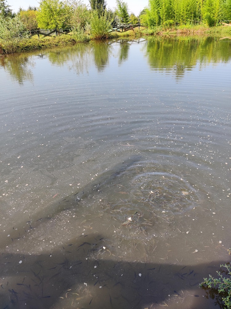 Korisnici su usput odlučili nahraniti ribice iz domskog jezerca, pa su im bacali hranu, što je ribice nagnalo na brzo gibanje i uzburkalo površinu jezera.