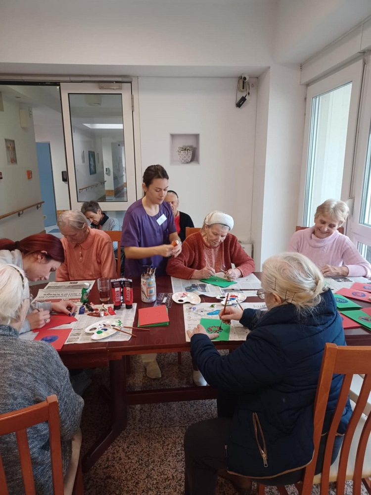 Ususret Božiću i vremenu darivanja, korisnici SeneCura doma za starije Bjelovar prihvatili su se posla te izrađivali prigodne božićne čestitke s različitim blagdanskim motivima. Koristili smo materijale poput papira, tempera i kistova. Osim što su se naši korisnici kreativno izražavali, ovom smo radionicom poticali njihove kognitivne funkcije i vježbali finu motoriku šaka kroz svrsishodnu aktivnosti, dok su nam u pozadini svirale prigodne božićne pjesme.