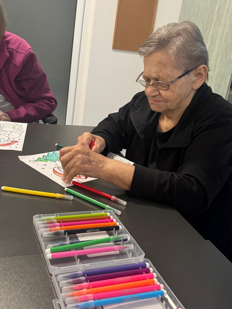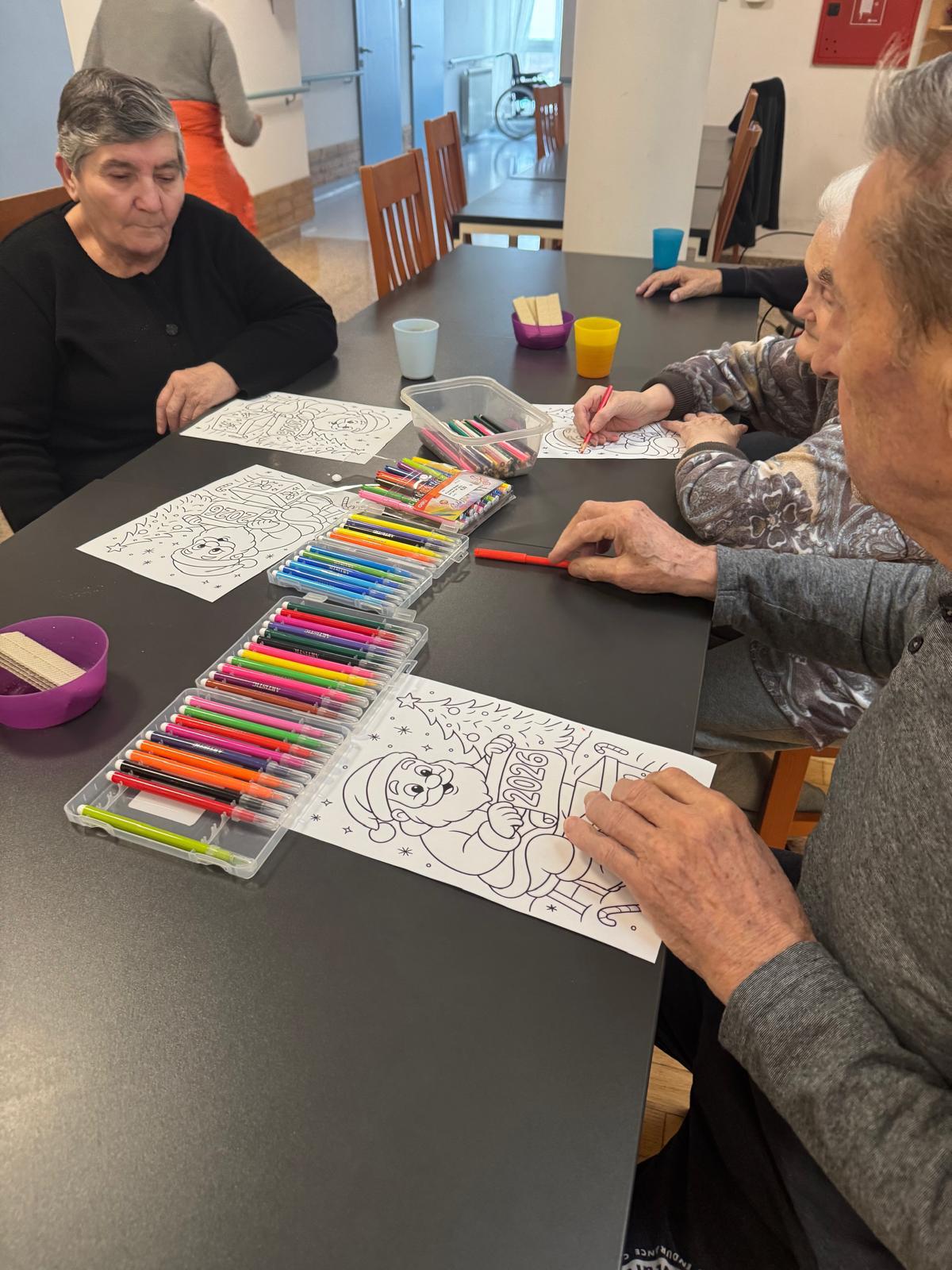 Nakon vježbanja, korisnici su se s veseljem posvetili bojanju božićnih motiva. Fotografije s druženja bilježe trenutke koncentracije, pažnje i zadovoljstva dok su korisnici birali boje i ispunjavali crteže. Bojanje je mnogima pružilo osjećaj smirenosti, ali i priliku za izražavanje vlastite kreativnosti. Svaki dovršeni crtež postao je mali, ali vrijedan dio blagdanskog ugođaja doma.