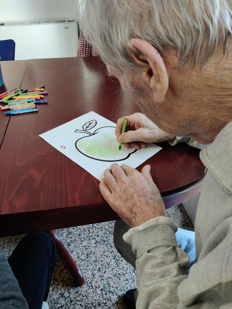 Povodom Svjetskog dana jabuka korisnici SeneCura doma za starije Bjelovar bojali su voštanim pastelama bojanke jabuka, koje ćemo izrezati i potom nalijepiti na drvo jabuke od hamera.