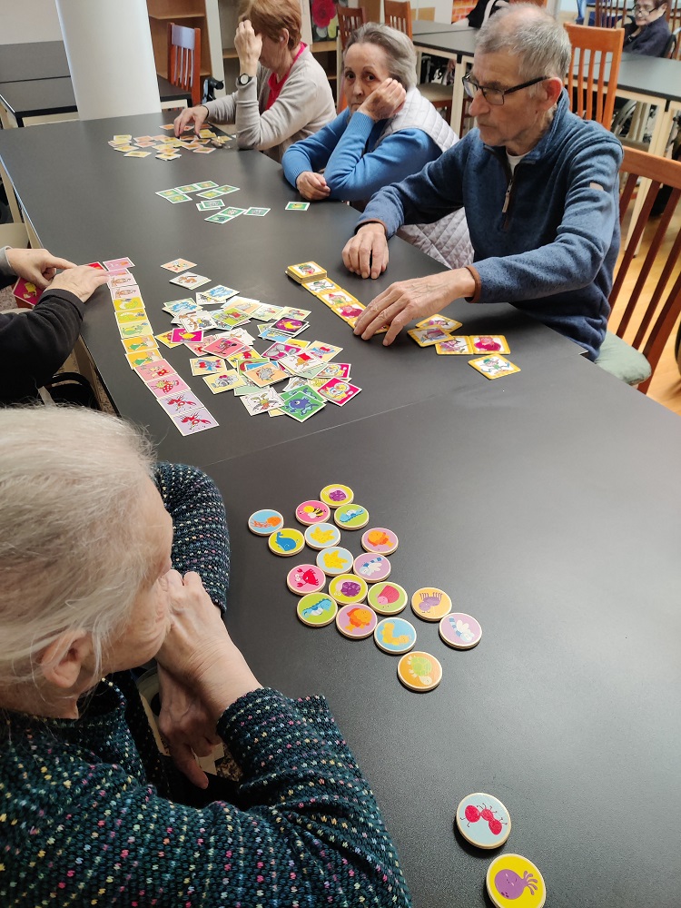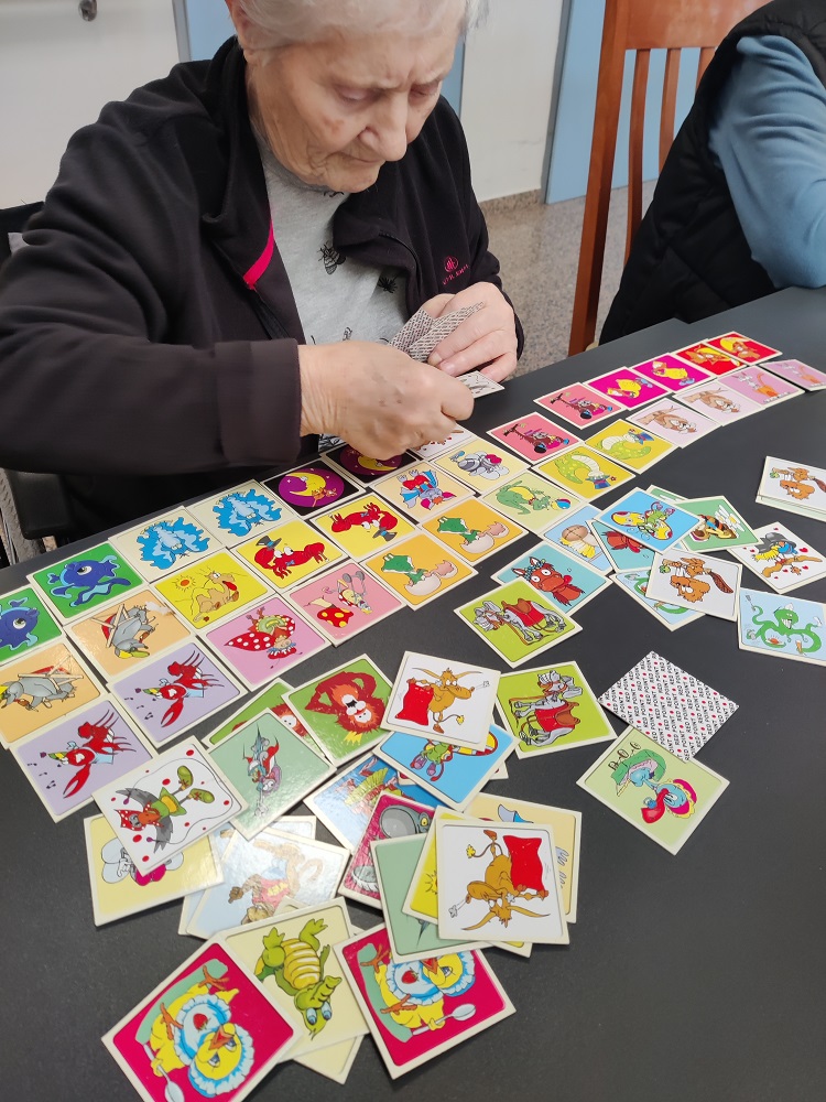 Iskoristili smo današnje poslijepodne i nakon ručka s korisnicima vježbali kognitivne funkcije uz pomoć različitih oblika kartica dosjećanja. Korisnici su imali zadatak prepoznati različite predmete na karticama i reći što sve znaju o tom predmetu. Ovom metodom se daje poticaj kojim se korisnike pokušava potaknuti na njihova sjećanja ili se stvaraju dosjećanja.